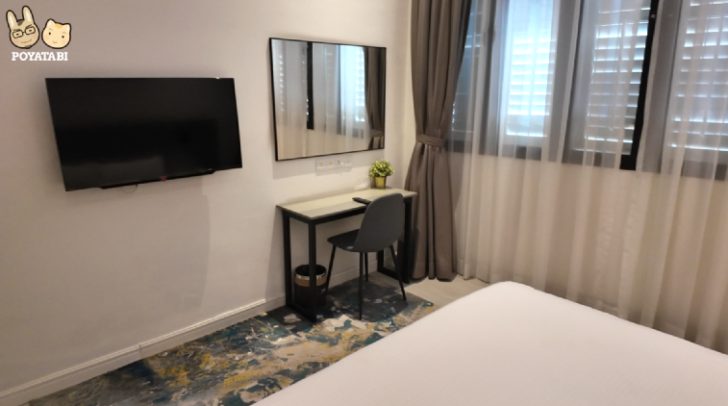 ベッドルームは大通り側、交差点の近くなので夜遅くまで車の音がうるさかったです。音が気になる方は耳栓などの大作が必要だと思いました(ぽや家は普通に寝れました)。静かな環境を重視する場合はこちらのホテルはお勧めできません。