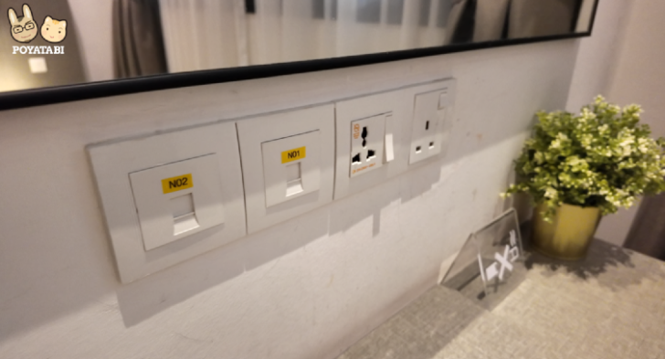 日本のコンセントがそのまま差せるユニバーサル電源もありました。(他の差込口はマレーシアタイプなので、変換プラグが必要です。マレーシアはBFタイプ)