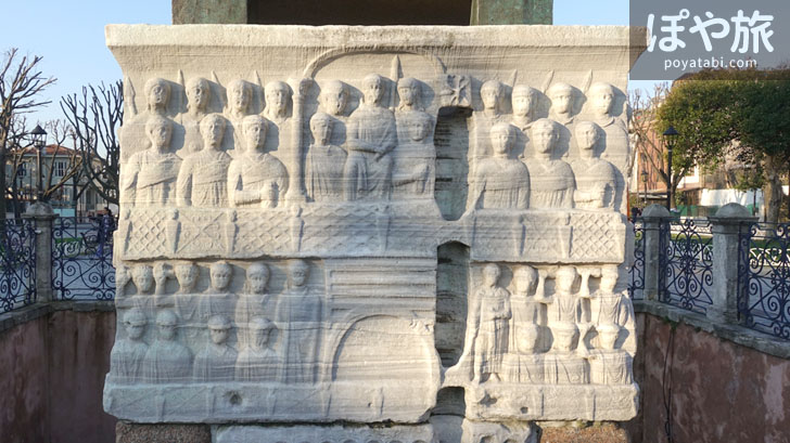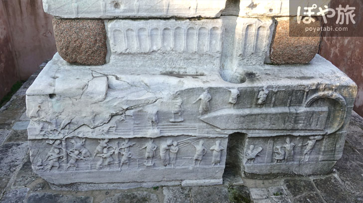 大理石の台座には、皇帝専用のバルコニーで皇帝(テオドシウス1世)と皇后の前でチャリオットレースが行われる場面が描かれています。市民はこの競技に熱狂しました。