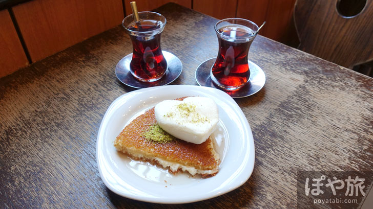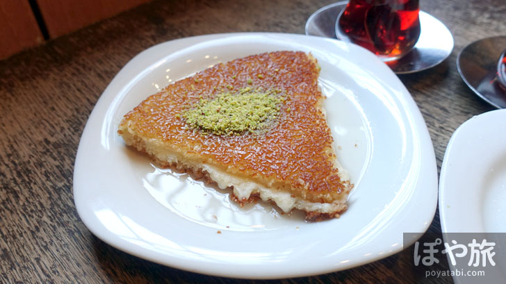 ずっと食べてみたいと思っていたスイーツ、キュネフェをいただくことにしました。キュネフェはトルコ語ですが、アラビア圏ではクナーファと呼ばれます。