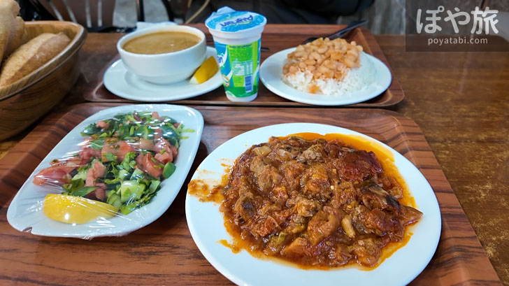 こんな感じで注文。トルコでは定番の料理を選んでみました。左上から時計回りに