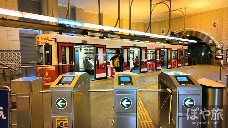 鯖サンドも食べることができたので、次はガタラ塔を観に行きます。新市街中心部へはケーブルカー(テュネル)を使いました。ロンドンに次ぐ古い歴史を持つ地下鉄(ケーブルカー)。見た目も可愛いですよね☺