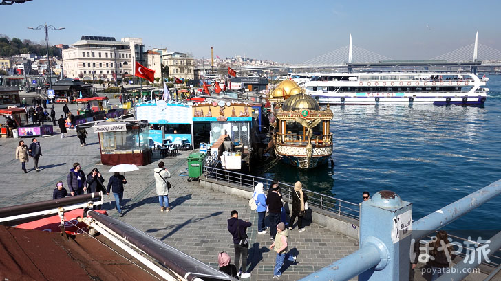 旧市街と新市街を結ぶガラタ橋。橋の上は釣り人で賑わっています。
