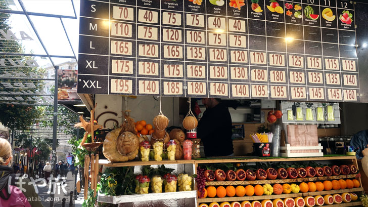 坂を下ってガラタ塔へ行く途中に見つけたジューススタンドで休憩。
