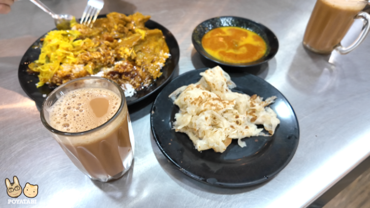 ぽや夫さんは好物のナシカンダー、ぽや妻はロティチャナイ(好物!)、ドリンクはテタリをいただきました。テタリはアイスにするのを忘れて熱々のやつが届いてしまったのですが、これはこれで美味しかったです☺
