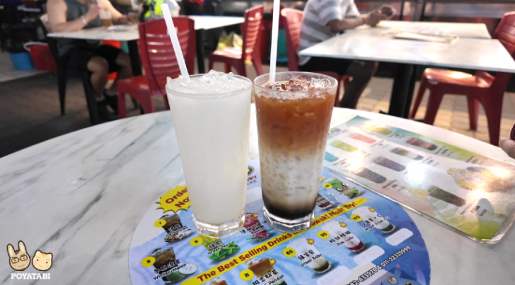 マレーシアのホーカーでは、席を取ったらドリンク注文!席代の代わりにドリンクを注文するのが一般的です。テーブルにもドリンクメニューのシールが貼ってあり、わかりやすかったです。