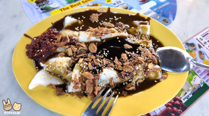 まずは 猪腸粉|チーチョンファン にしました。香港の飲茶などでも定番の料理ですが、マレーシア風の腸粉コッテリ甘辛いソースをかけて食べるのが一般的です。イメージとしてはおでんの味噌だれとか、みたらし団子みたいなおやつ系の食べ物(のように感じます)。見かけると食べたくなっちゃうのです。
