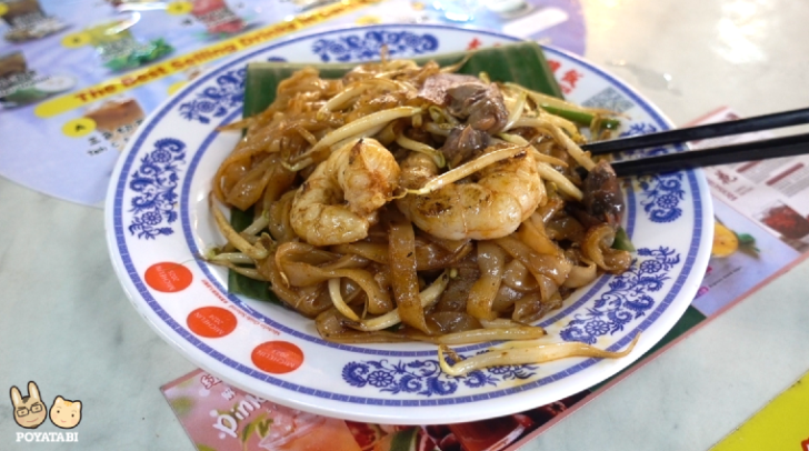 もう1品は、炒粿条|チャオクイティアオ。米粉麺を炒めた焼きそばです。こちらも甘辛い醤油ベースのソースでもちもち美味しい♪ エビや赤貝、モヤシなどが入っていました。