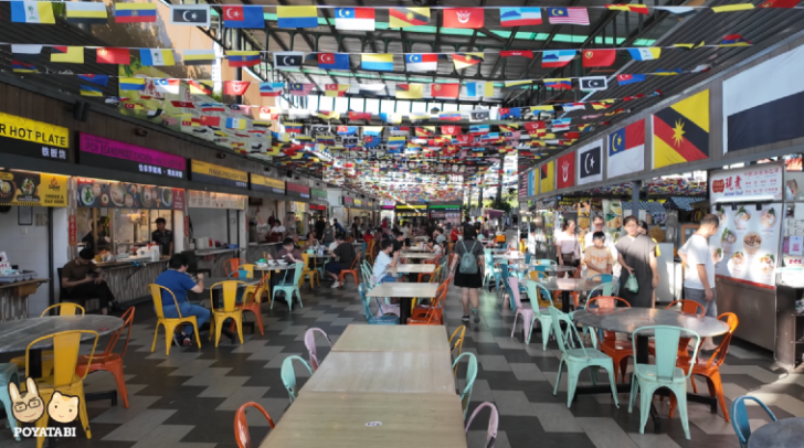 ローカルなホーカー(フードコート/屋台村)もあって、観ていてとても楽しいです(が、食べたばかりでお腹が減っていないのでここはスルー)。