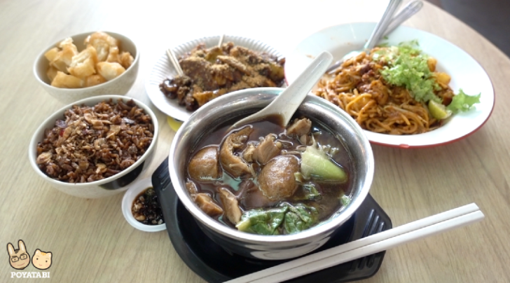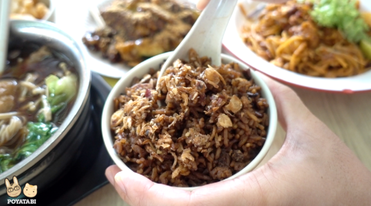 ヤム芋(orタロイモ)入りの甘醤油味の炊き込みご飯です。汁物のお料理(バクテー)などと一緒に食べるのが定番だそう。色は濃いですが味は薄味であっさり、ご飯は長粒米なのでちょっとパサパサしています。