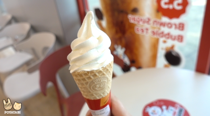 ソフトクリーム2リンギット(77円)。メニューにあった写真よりもソフト部分が小さくて、お値段相応みたいな気がしました。味は普通。
