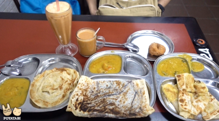 ロティを3種とワダ(ドーナツ)、ドリンクを注文。やっぱりインド人街は激安。ロティはたったの1.8リンギットでした(70円くらい)。