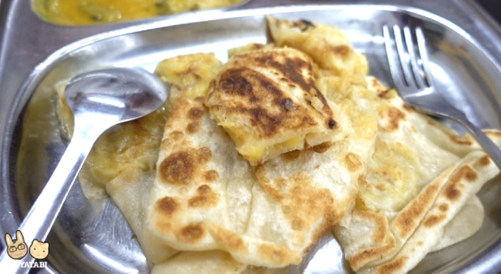 ロティ・ピサン(バナナ入り)も美味しかったです。ロティはちょっとコシのあるクレープのような、もっちりしたパイのような食感なので甘いものも合うんですよね。