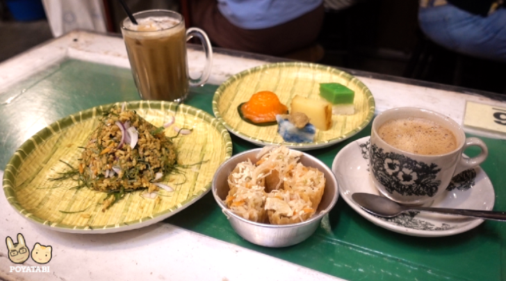ロントン、チャークイティアオ、カヤトーストとドリンクを注文しました。ロントン(お米をバナナに包んで蒸したお餅のような団子のようなもの)は初めて食べましたが、お餅のようなもちもち感やねっとり感がないので、お米というよりお芋みたいな感じでした。クイティアオとカヤトーストは安定の美味しさ。