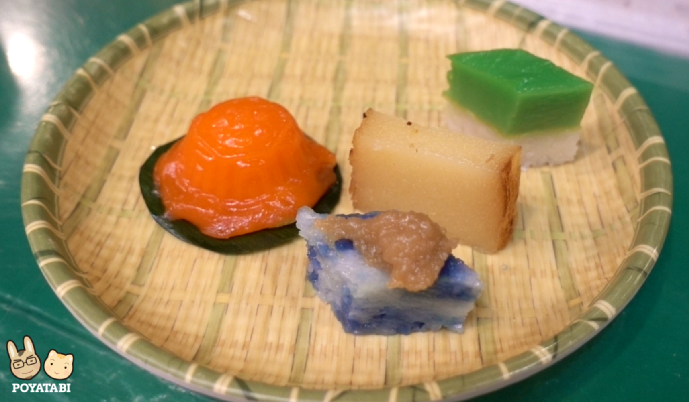 午後はおやつにニョニャクエを食べに行きました。クエはマレーシア(やインドネシアなどで食べられている)の伝統菓子です。