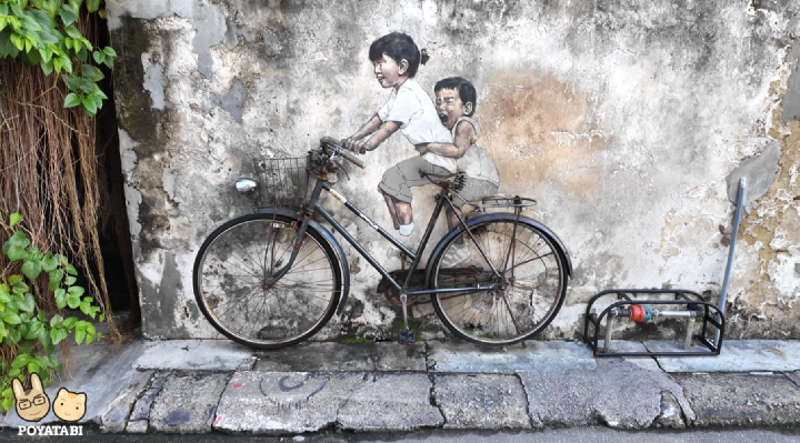 朝食後は観光へ。ペナンと言えば!の壁画を観に来ました。