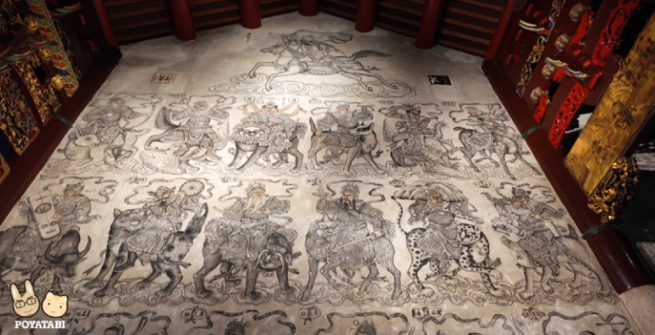 建物2階は本殿ですが、左右の壁に描かれた白描画が素晴らしいんです。