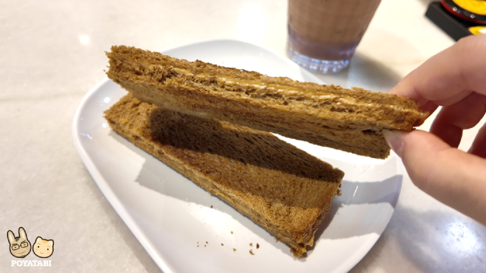 座席が無かったので、近くのファミレス、OLDTOWN White Coffeeでテ・アイスとピーナッツトーストを注文して席に着きました。
