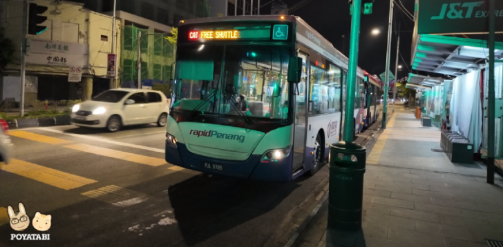 ジョージタウン内を周回している無料のバス|セントラル・エ リア・トランジット・バス(CAT)があり、観光に便利です。車体の正面にCAT FREE SHUTTLEと表示されているので、そのバスが来たら無料で利用可能です。