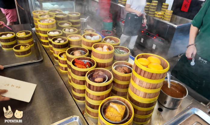 トレーを持って點心の蒸籠の前で指差し注文、載せてもらうというカフェテリア方式。お会計は最後に出口近くのレジで支払うシステムです。
