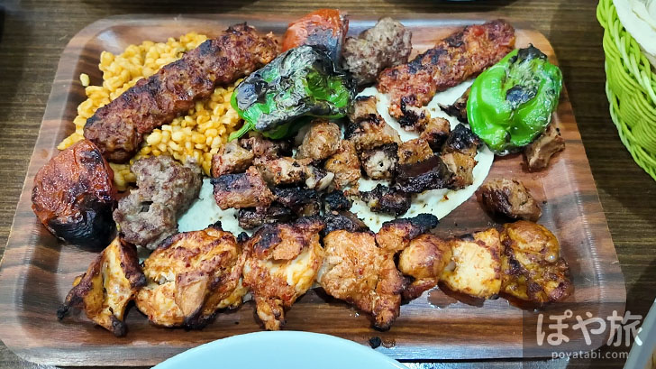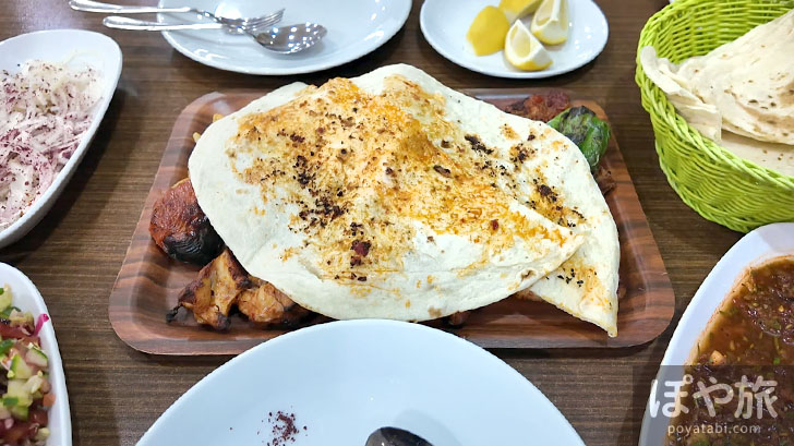 ケバブが到着!薄いパンが上にかぶせてあります。